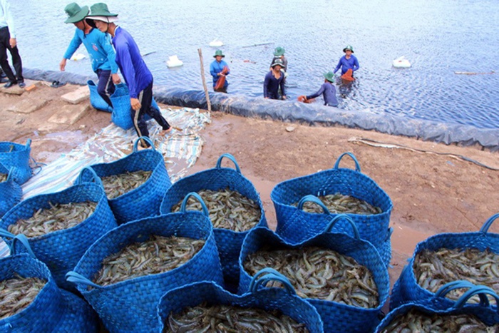 Giá tôm nguyên liệu tăng, người nuôi tôm phấn khởi.