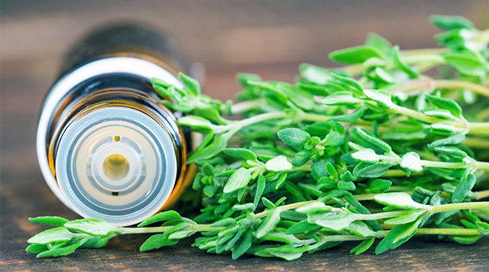 Mười tám hợp chất đã được phát hiện trong các hạt nang dầu thyme tương ứng với 96,15% tổng thành phần dầu. Trong đó, Thymol và Carvacrol có hoạt tính kháng virus, vi khuẩn và hoạt tính kháng viêm mạnh, trên người nó được sử dụng để giúp giảm tiết dịch nhầy, giảm đờm, giảm ho, làm thông thoáng đường thở.
