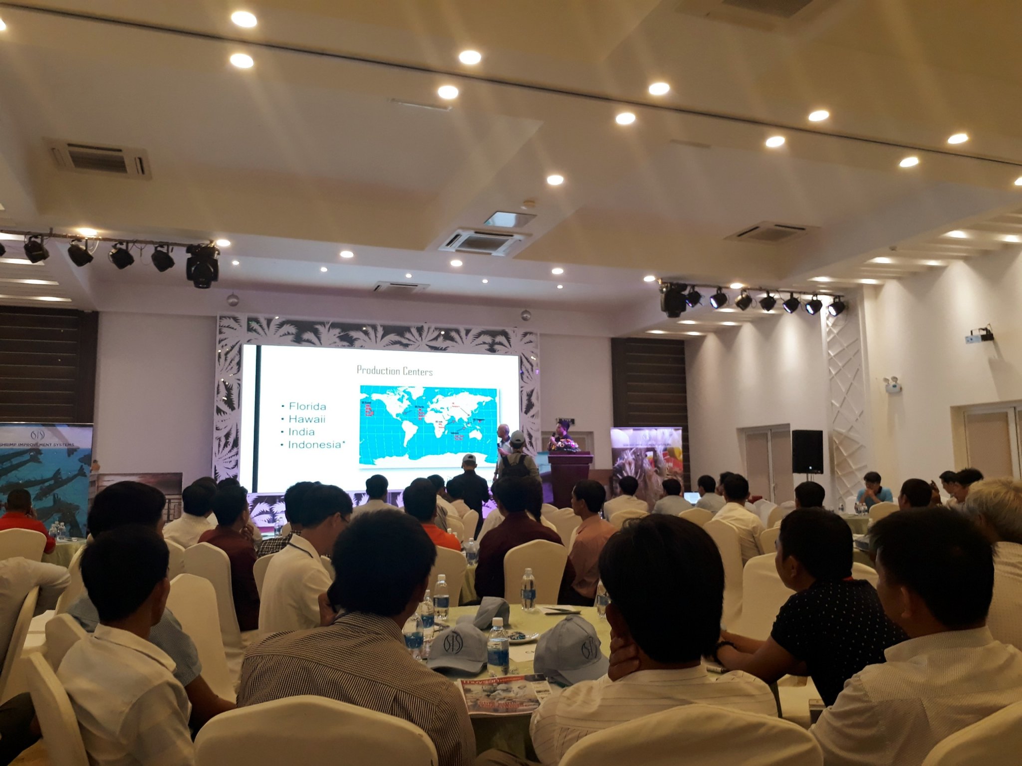 Bên cạnh đó, chia sẻ về kinh nghiệm thành công trong quản lý trang trại, mầm bệnh và virus của Indonesia, Tiến sĩ Yuri đến từ CPP Indonesia đã có những trình bày về kết quả nghiên cứu, cũng như đánh giá các mô hình nuôi tôm hiện nay trên thế giới. Thông qua buổi Hội thảo, Công ty SIS đặc biệt nhấn mạnh về phương pháp quản lý dịch bệnh trên ao nuôi tôm là yếu tố vô cùng quan trọng. Đồng thời, qua một số trao đổi được xem xét, Công ty đã ghi nhận và hỗ trợ giải đáp những kiến nghị, các đề xuất liên quan đến chính sách, chất lượng và giá cả đến các đại biểu tham dự.