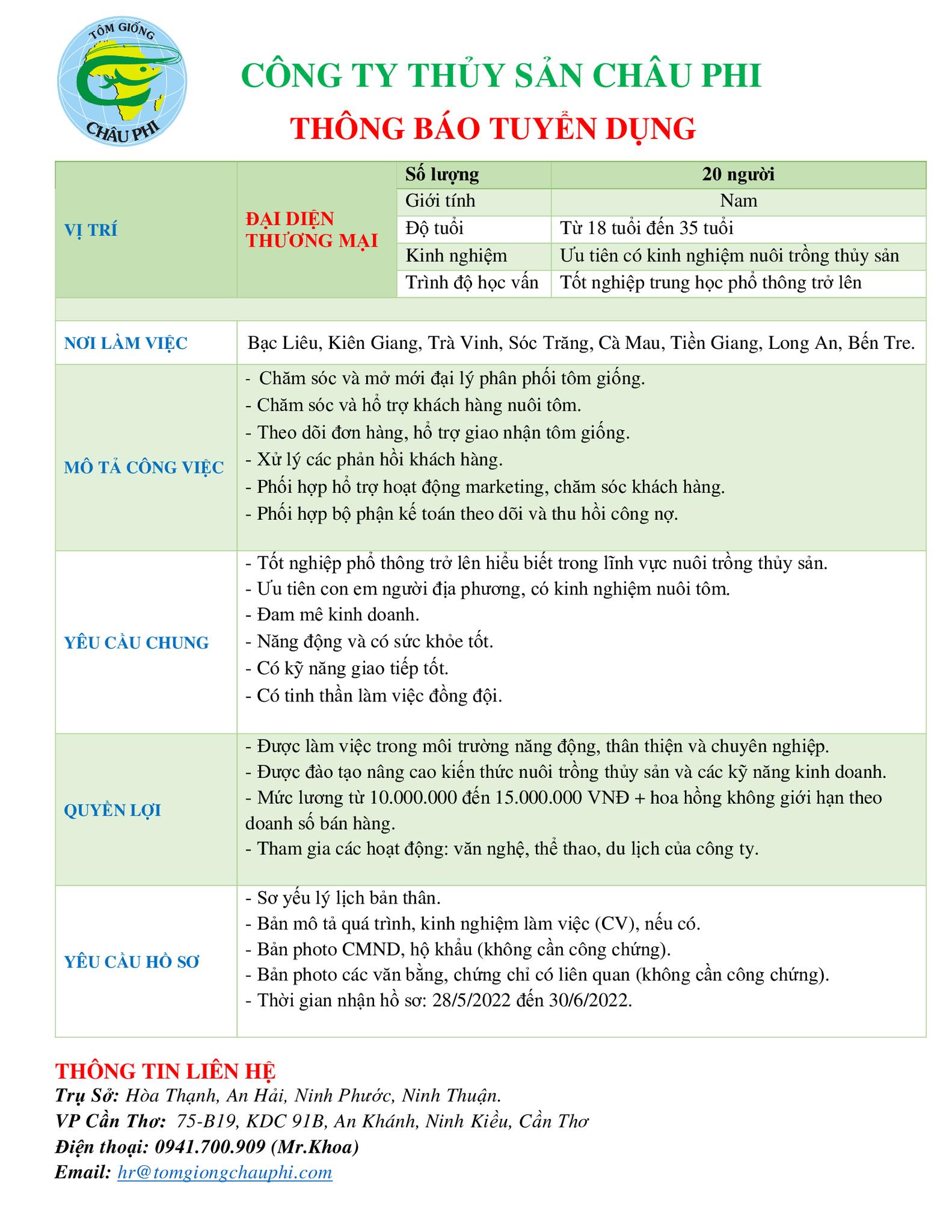 THÔNG BÁO TUYỂN DỤNG