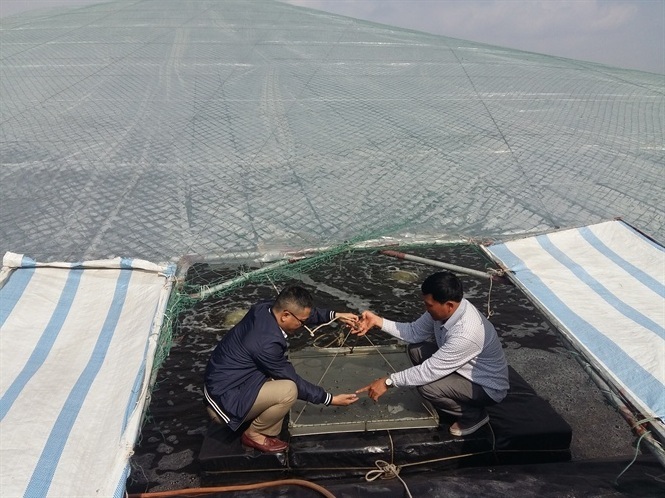 Kiểm tra mô hình nuôi tôm vụ đông có mái che chóp nón tại Ninh Bình