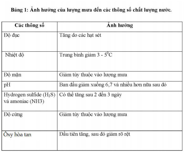 Tất cả các yếu tố môi trường nêu trên như nhiệt độ, pH, DO, độ mặn, độ cứng đều có những tác động đến sức khỏe của tôm. Khi mưa xuống, môi trường thay đổi, các yếu tố này sẽ gây ra bất lợi cho tôm nuôi. Chẳng hạn, tôm sẽ giảm ăn, dễ bị stress, thiếu khí và dễ nhiễm bệnh cũng như tăng tỷ lệ chết, giảm năng suất của ao.