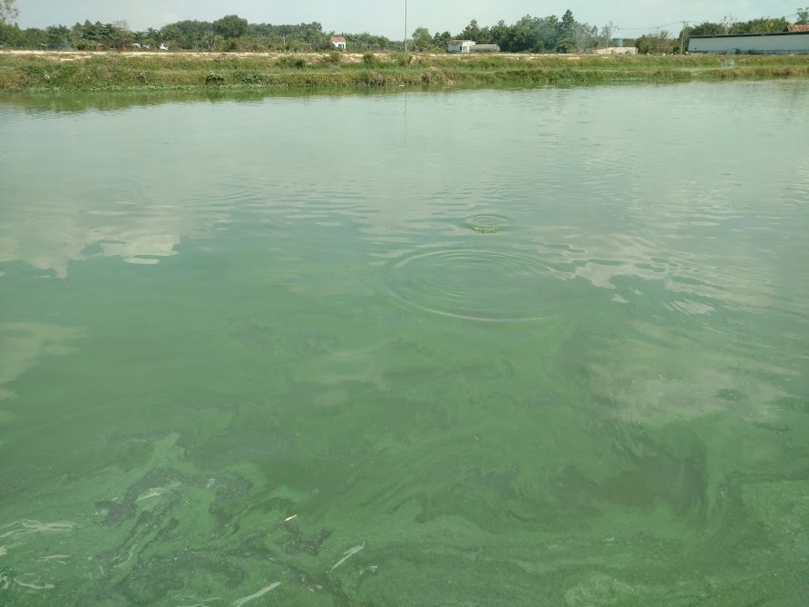 Dùng đĩa Secchi để đo độ trong của nước, nếu ao có độ trong thấp hơn 30 cm, là cảnh báo nước ao nuôi đang dư thừa chất dinh dưỡng, tảo phát triển quá dày. Khi tảo lam phát triển với mật độ dày đặc có thể thấy hạt li ti trên mặt nước bằng mắt thường, nước ao sẽ có màu xanh lam, xanh ngọc, nổi váng xanh trên mặt nước và có mùi hôi. Trời nắng gắt tảo lam thường nổi thành đám trên mặt nước, dạt về cuối gió.