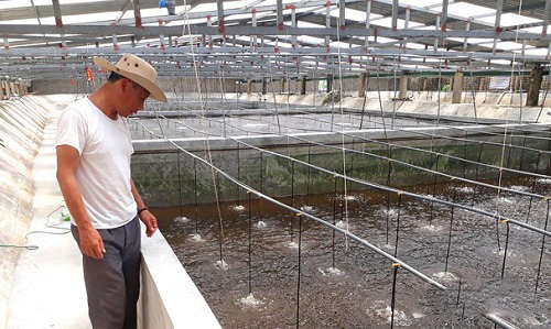 Hộ ông Hoàng Xuân Tin ở xã Quỳnh Bảng chọn cách nuôi tôm trong bể xi măng để hạn chế dịch bệnh trong bất cứ thời tiết dù mưa hay nắng nóng. Với kinh phí đầu tư hơn 1 tỷ đồng, ông xây 18 bể nuôi tôm bằng xi măng có nhà che với diện tích từ 25 – 40 m2, mật độ thả 220 – 250 con/m2. Trong điều kiện nắng nóng như hiện nay, hệ thống nuôi tôm của ông sẽ ổn định được nhiệt độ ngày – đêm, lượng thức ăn được kiểm soát, không thất thoát ra ngoài.