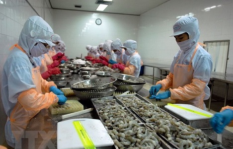 Chế biến tôm đông lạnh xuất khẩu. (Ảnh: Danh Lam/TTXVN)