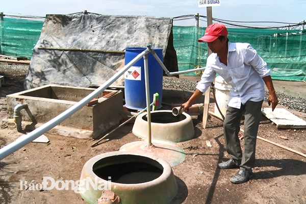 Với mục tiêu nuôi tôm bền vững mang lại hiệu quả kinh tế cao, giảm thiểu ô nhiễm, ông Nguyễn Trường Đại (xã Vĩnh Thanh, huyện Nhơn Trạch) đã áp dụng quy trình biogas xử lý chất thải trong chăn nuôi heo để xử lý chất thải trong nuôi tôm siêu thâm canh.