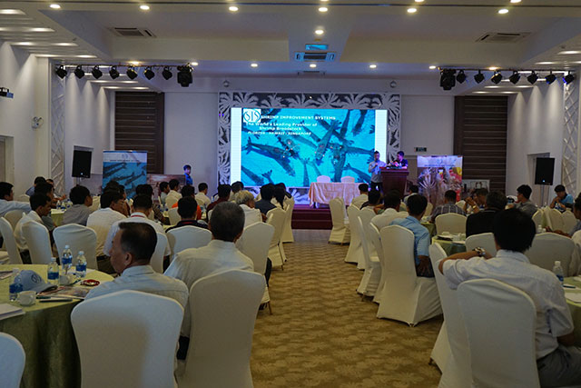 Mở đầu buổi hội thảo, ông Guillermo Jaramilo, Giám đốc nghiên cứu và phát triển của SIS Hawaii, giới thiệu sơ lược về lịch sử hình thành và phát triển của SIS, quy trình sản xuất tôm giống bố mẹ với kỹ thuật hiện đại để đạt được tiềm năng di truyền tối ưu. Theo ông Guillermo Jaramilo, Công ty Shrimp Improvement Systems là hãng cung cấp tôm bố mẹ sạch bệnh SPF lớn nhất thế giới, thành lập năm 1998. Công ty có trụ sở sản xuất tại Hawaii và Florida với tổng công suất 550.000 cặp tôm bố mẹ/năm. Công ty sản xuất tôm giống dựa trên nguyên tắc tuân thủ chính sách an toàn sinh học nghiêm ngặt. Chất lượng con giống của SIS trong năm qua có nhiều cải tiến và nhận được phản hồi tích cực từ phía khách hàng.