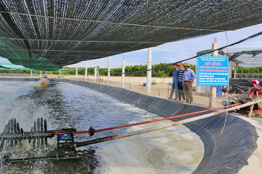 Mô hình nuôi tôm thẻ bằng công nghệ Biofloc tại hộ anh Nguyễn Văn Khánh, xóm 6, Quỳnh Minh, Quỳnh Lưu, Nghệ An