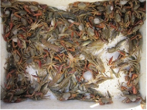 Cua, còng, tép tạp trong ao là vật chủ trung gian lây truyền virus đốm trắng