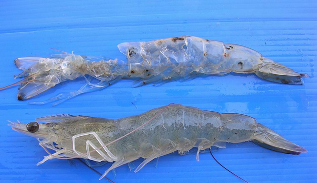 – Trong quá trình tăng trưởng, khi trọng lượng và kích thước tăng lên mức độ nhất định, tôm phải lột bỏ lớp vỏ cũ để lớn lên.