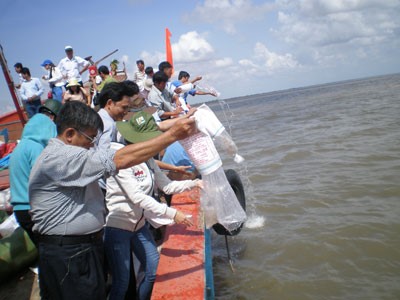 Được biết, từ năm 2003 đến nay, ngành nông nghiệp tỉnh Trà Vinh đã thả hơn 31 triệu con tôm ra biển và 420.000 con cá giống ra sông.