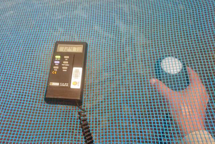 Cường độ ánh sáng (LUX) được đo mỗi ngày vào lúc 12 giờ trưa. Đo cường độ ánh sáng trên một bể thí nghiệm.