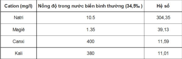 Bảng 2. Hệ số nhân theo độ mặn (ppt, ‰ ) để các cation có nồng độ tương tự nước biển.